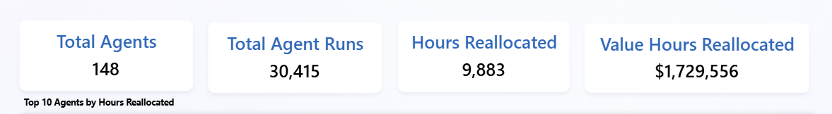 What the dashboard tracked: which agents were being used, how often, by whom, and with what outcome.